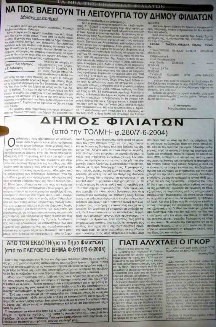 Ο κόσμος, που έχει υποστεί αυτή την παρακμή, πρέπει να αναλογιστεί τις επιλογές του στις επόμενες εκλογές. Γιατί τόσα χρόνια οι πολίτες της Ηγουμενίτσας ψηφίζουν ξανά και ξανά τους ίδιους ανθρώπους που λιμένονται την πολιτική σκηνή του τόπου και τον οδηγούν στην παρακμή;