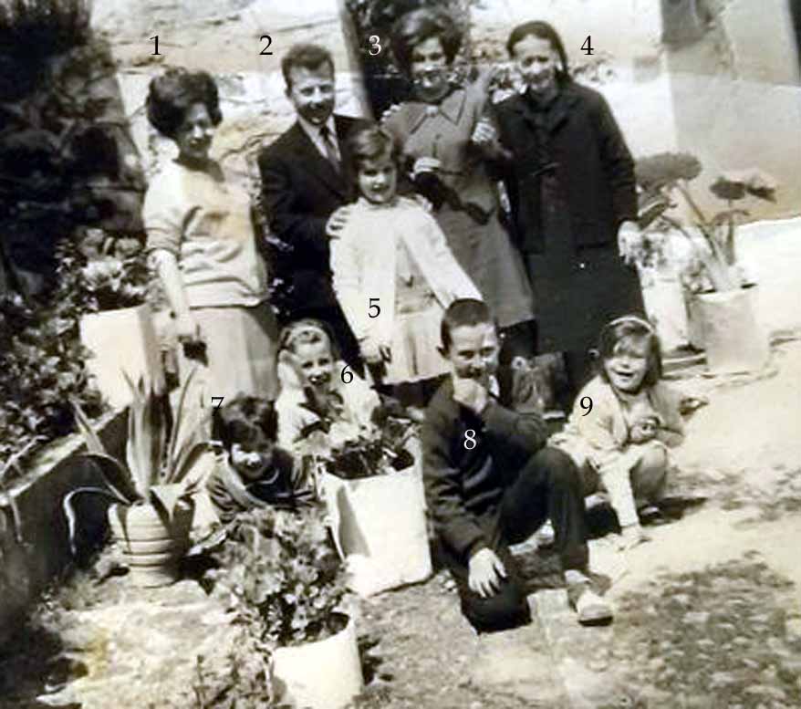 Η οικογένεια του δάσκαλου Θέμη Κυριάκη μαζί με συγγενείς και φίλους, πριν πολλά χρόνια στο Φιλιάτι (απο το αρχείο Φίλιππου Κυριάκη). 1.Αναστασία Κυριάκη- το γένος Στεργίου, απ το Πλαίσιο 2.Θεμιστοκλής Κυριάκης- Θέμης, δάσκαλος 3;; 4. Αγγελική Στεργίου γιαγιά απο το Πλαίσιο 5. Αγγελική Στεργίου κόρη του Πάνου 6.; 7. Βεατρίκη Κυριάκη του Θέμη 8. Φίλιππος Κριάκης του Θέμη 9.;;