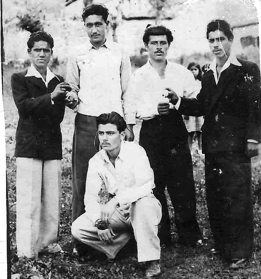 Μια φωτογραφία της δεκαετίας του ’50, από αριστερά Νίκος Νάτσης (Φαρούκ)- πατέρας του Παναγιώτη (Τσίτα,Γκανά)κλπ. Σταύρος Λούμπας- γιός του Γκέλε που έδενε τα ζώα στη Λούτσα και πατέρας της Φωτούλας, του Καρδιάρη και του Βαγγέλη (Τζέ) κλπ. Θοδωρής (Τσέλας;),Λευτέρης Νάτσης (Τέρες) και κάτω Ανδρέας Νίνας (Ντρίκο μαλίς- σπουδαίος ποδοσφαιριστής το ΑΡΗ)