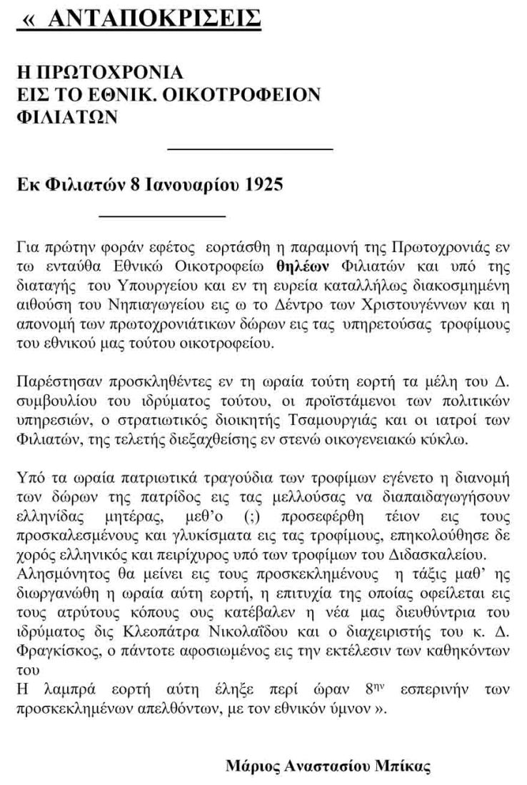 Φιλιάτες- για το Οικοτροφείο πριν 100 χρόνια!