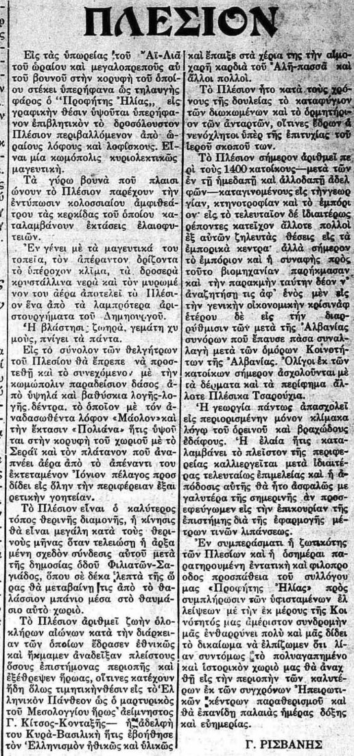 Απο την εφημερίδα ΘΕΣΠΡΩΤΙΑ 1931