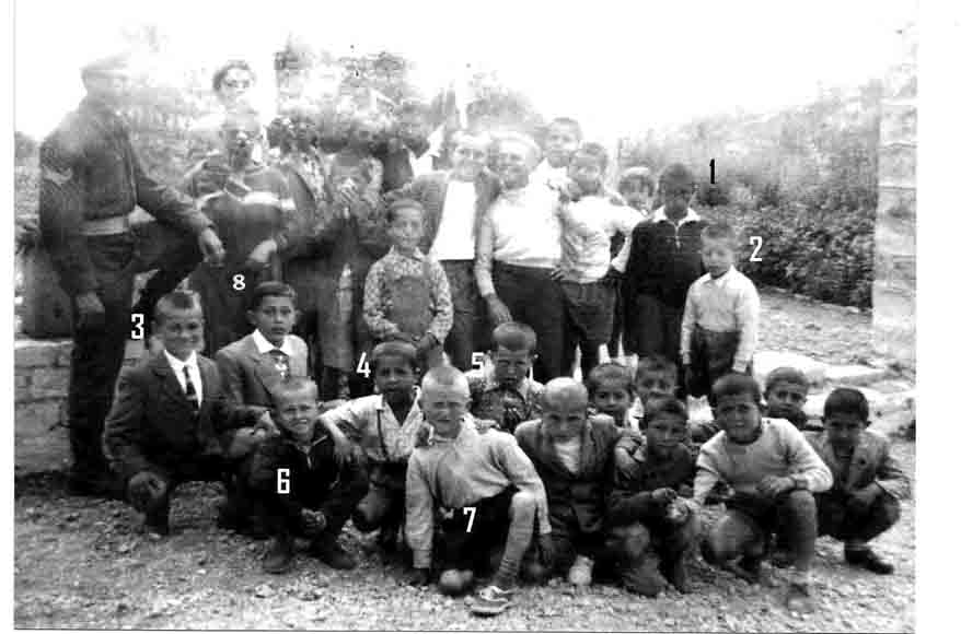 Γύρω στο 1960 Μια φωτογραφία σε κακή κατάσταση, ειδικά από τους όρθιους δεν γνωρίζεις κάποιον εύκολα- ούτε το χώρο που είναι τραβηγμένη. Ούτε γιατί υπάρχει ο φαντάρος στην άκρη. Γνώρισα τον 1.Νικόλας Νέτης (Κολιός τση Μάλιως) 2. Νικόλας Μαντζούκης 3. Μοιάζει με τον Γιάννη Λ αλλά ο ίδιος μου είπε ότι κάνω λάθος 4. Παναγιώτης Τσέλας ( Νότες- του Τζουτζούλη), 5 Βαγγέλης Μπούκουρης. Κώστας Γεωργίου (Τάταρος) 7. Δημήτρης Κώτσης (ο αείμνηστος Γερομάλης) 8. Νομίζω τον λένε Σπύρο Νίνα- (γιός του Αντρέα- Ντρίκο Μαλί; Πάντως θυμάμαι πως έφυγαν νωρίς για Αθήνα).