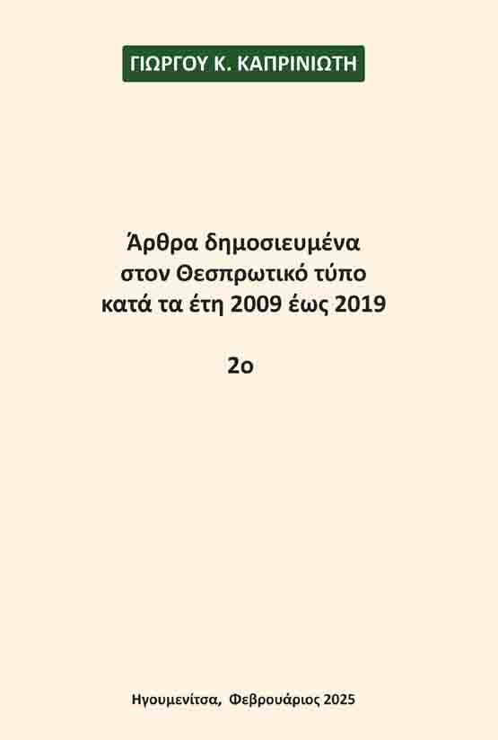 Το βιβλίο του Γιώργου Κ. Καπρινιώτη με εκατόν εβδομήντα επτά (177) άρθρα δημοσιευμένα στον Θεσπρωτικό Τύπο από 9/4/2009 μέχρι 8/12/19