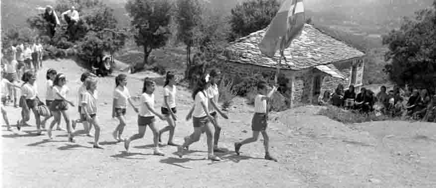 Συχνές ήταν οι εκδρομές στη φύση. Κάποιες φορές συναντιόμαστε στον κάμπομε μαθητές από το γειτονικό χωριό Πετούσι, μοιράζοντας την απόσταση, παίζαμε μαζί και τραγουδούσαμε.