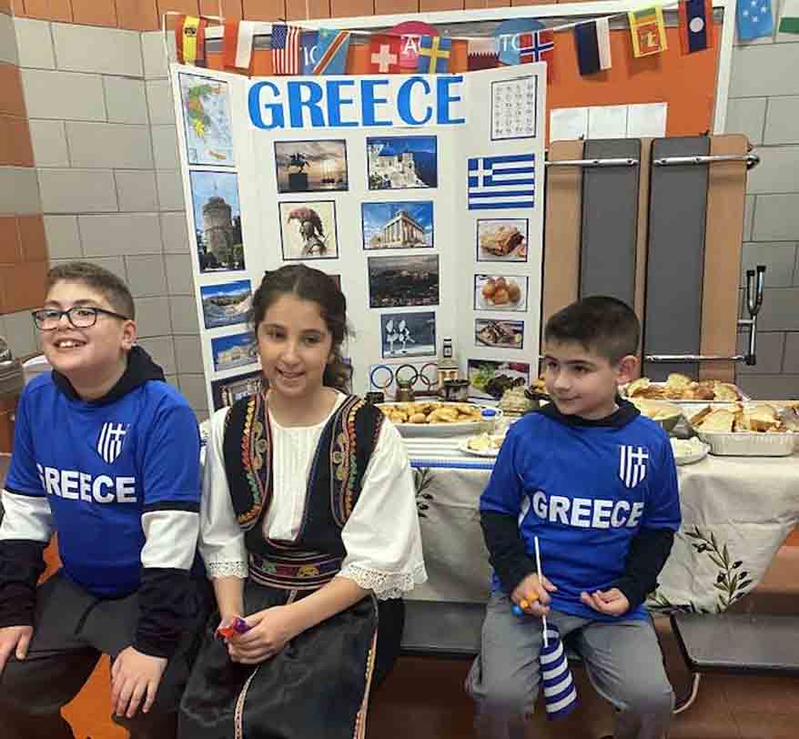Η Μελίνα με συμμαθητές της Θεόδωρο κλπ στο σχολείο τους Αντιπροσωπεύω την Ελλάδα Με ελληνικά Φαγητά Η φορεσιά της είναι από την ήπειρο Ήταν της μαμάς της τώρα τι φοράει Μελίνα όταν πάμε σε Ελληνικές εκδηλώσεις