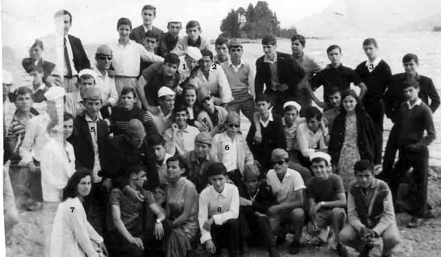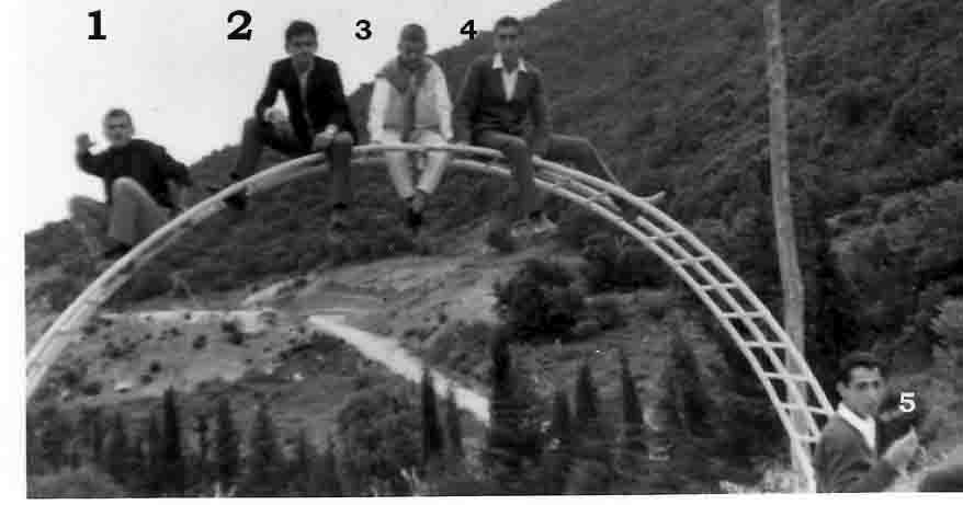 Εδώ είμαστε σε εκδρομή του 1967 στη Βελλά, το1.Τάσος Κουφάλας, 2.Βασίλης Βουτσής;, 3 Αντώνης Δασκαλάκης 4.Γιώργος Κώτσης 5.Μίμης Κουλύρας