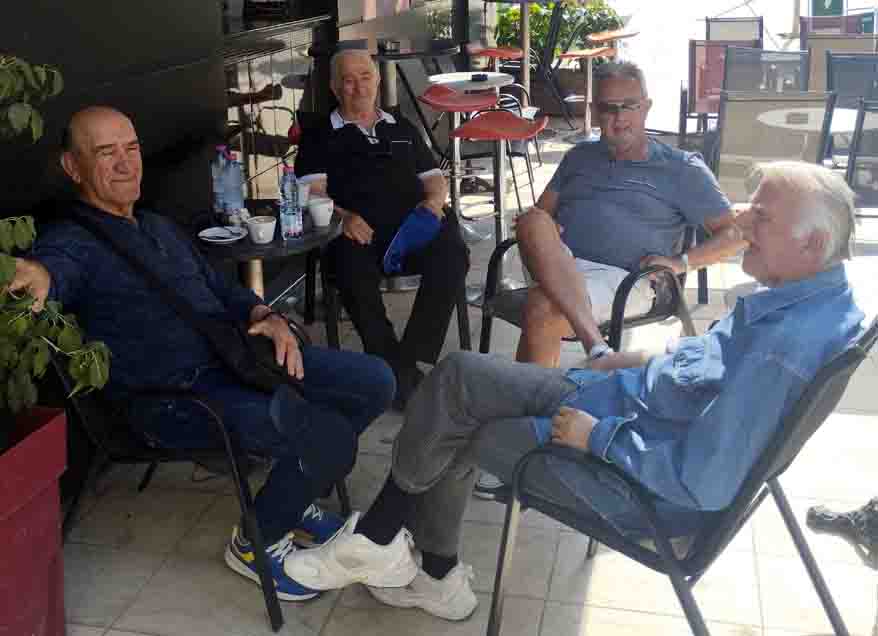 στο καφέ του Σωτήρη είχα την τύχη να καθίσω χθές με εκλεκτή παρέα, τον συνεργάτη στα καλλιτεχνικά Κώστα Μόκα, τον αγαπητό θείο του τον Μηνά και βέβαια τον παλιό φίλο και καλό συνεργάτη Γιώργο Κέρο- παλιό δήμαρχο Σαγιάδας που με έχει βοηθήσει πολύ στα καλλιτεχνικά- καθότι ο Γιώργος πρόσεχε πολύ τον Λευτέρη τον Πλασκασοβίτη- παλιό δάσκαλο της Φιλαρμονικής Φιλιατών και έχει καλές γνώσεις στα μουσικά θέματα!