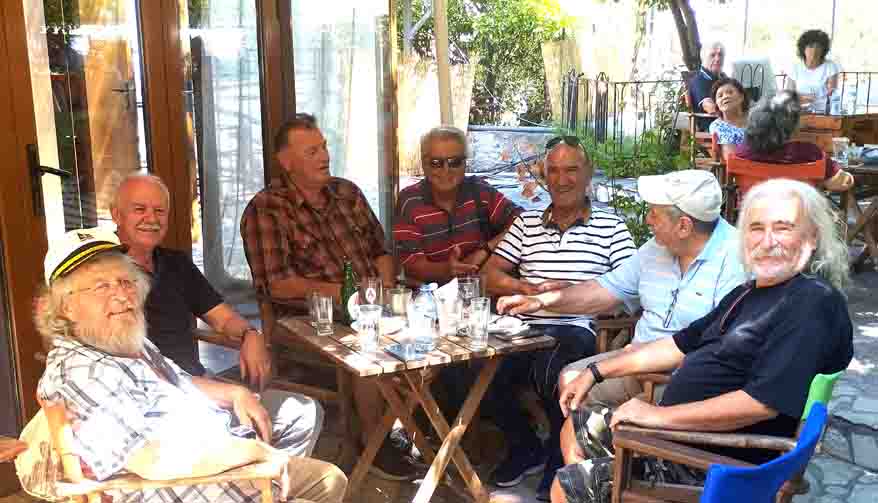 Και το παζάρι έκλεισε με του ανταμώματος τη χάρη, μετά τον καφέ ούζο και μπύρα με καλή παρέα: απ αριστερά Θανάσης Μίγκος, Βασίλης Βήτος, Αντρέας ο Μολόχας, Χρήστος Σωτηρίου, εγώ, Ηλίας Λάγγαρης και Γιάννης Μπαικούσης