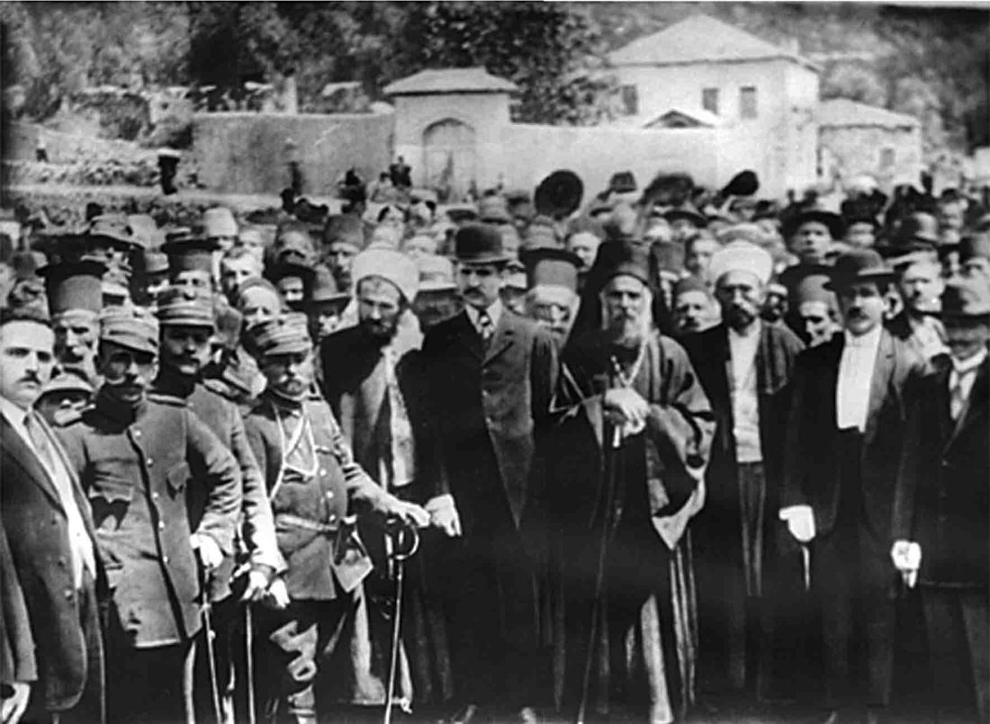 Η ιστορική αυτή φωτογραφία πιθανόν να βγήκε σε γιορταστικές εκδηλώσεις που έγιναν το Μάρτη του 1913. Ο χώρος είναι εμπρός στο τότε διοικητήριο- σήμερα πάρκο ΟΤΕ. Το σπίτι πίσω είναι όπου σήμερα το σπίτι Σ. Τσίνα- βόρεια του Αϊ Δημήτρη. Ο ιερωμένος εμπρός είναι ο μητροπολίτης Κων/νος Μικρούλης- από το αρχείο του είναι η φωτογραφία. Αριστερά του μητροπολίτη πιθανόν ο Θεόδωρος Θεοδωρίδης- διοικητικός επίτροπος, αριστερά αυτού, ο μουφτής Ζεκιργιάς. Δεξιά του Μητροπολίτη ο χότζας Μεμές. Δεξιά του Χότζα είναι ο Αναστάσιος Σωτηρίου- πρόεδρος της κοινότητας Φιλιατών και συνέχεια πιθανόν ο Μηνάς Κούτης. Στο άκρο αριστερά πρέπει να είναι ο Γρηγόρης Τσόγκας