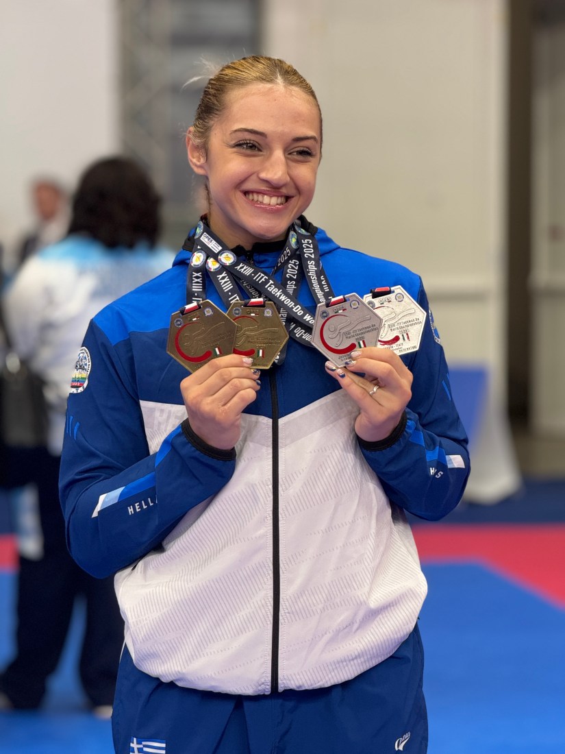 Η Πρύτανης Καθηγήτρια κυρία Άννα Μπατιστάτου, τα μέλη του Συμβουλίου Διοίκησης και οι Αντιπρυτάνεις του Πανεπιστημίου Ιωαννίνων εκφράζουν τα θερμά συγχαρητήριά τους στην φοιτήτρια του Τμήματος Ιατρικής Αικατερίνη Παπαδιώτηγια την κατάκτηση δύο χρυσών και δύο ασημένιων μεταλλίων στο Παγκόσμιο Πρωτάθλημα TAEKWONDOITF 2025, το οποίο διεξήχθη στο Γεσόλο της Ιταλίας.