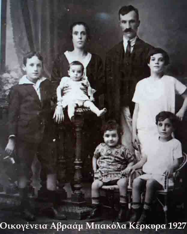 «Αβραάμ Μπακόλας του Σιμαντόβ (πατέρας), Εσθήρ Μπακόλα (μητέρα), Ελισάβετ Μπακόλα (μεγάλη κόρη), Ραφαήλ Μπακόλας (υιός), Άννα Μπακόλα (καθισμένη δεξιά), Ευτυχία Μπακόλα (καθισμένη αριστερά), και Ραχήλ Μπακόλα (μωράκι, γεννηθείσα στην Κέρκυρα). Από αυτούς μόνο ο Ραφαήλ, η Ευτυχία και η Ραχήλ επιβίωσαν μετά τον πόλεμο.» (ο αναφερόμενος ως πατέρας είναι προπάππους του σημερινού Ραφαήλ που ήρθε στο Φιλιάτι).
