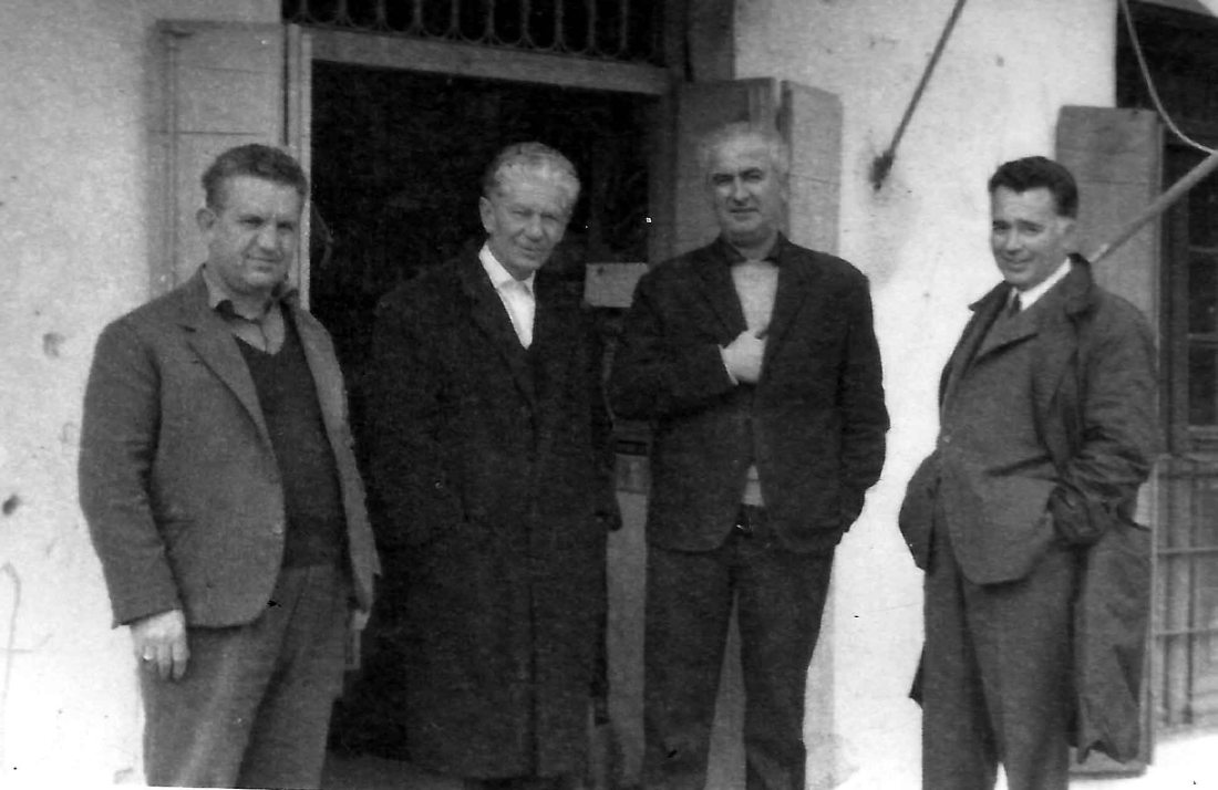 Παλιοί Φιλιατιώτες στην πάνω πλατεία, Θοδωρής Μέλλιος, Αχιλλέας Γούλας, Στέφανος Σωτηρίου Παναγιώτης Στεργίου! απο το αρχείο της Σοφίας Μέλιου Δάλλα.
