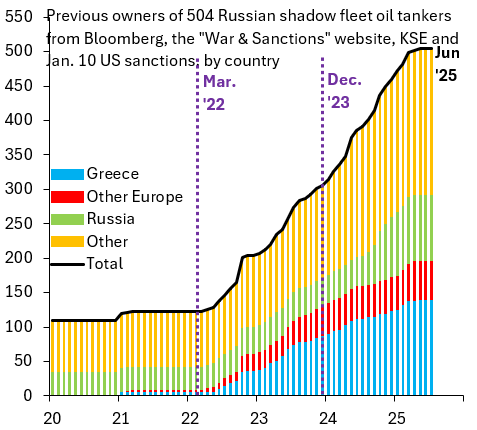 Πέρασα τις τελευταίες μέρες γράφοντας για το 20ό πακέτο κυρώσεων της ΕΕ, το οποίο κάνει μια σημαντική ρήξη με το παρελθόν, απαγορεύοντας στα δυτικά πετρελαιοφόρα να μεταφέρουν ρωσικό πετρέλαιο. Αυτή είναι μια ρήξη επειδή η ΕΕ μέχρι τώρα προσπαθούσε να κλείσει τον σκιώδη στόλο , μια προσπάθεια που απέτυχε επειδή η κυβέρνηση Τραμπ αρνήθηκε να συμμετάσχει στην επιβολή κυρώσεων σε πλοία του σκιώδους στόλου.