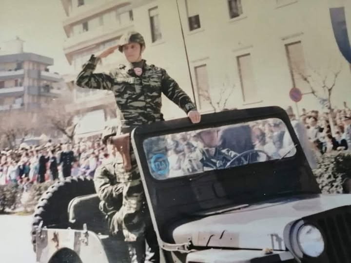 Έφεδρος Ανθυπολοχαγός (ΠΖ) στο 628 Τάγμα Πεζικού Φιλιατών, κατά την παρέλαση για την απελευθέρωση των Ιωαννίνων στις 21 Φεβρουαρίου 1990.