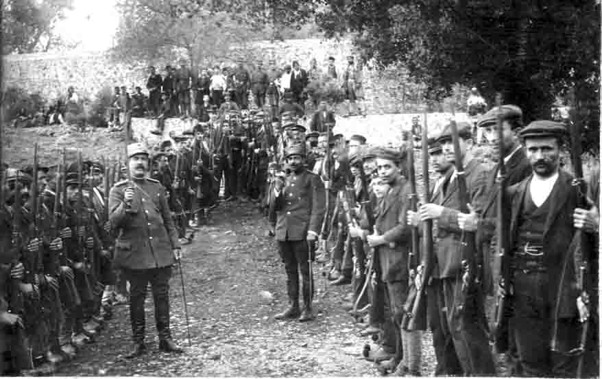 (αυτές τις μέρες του 1913 ήλθε στους Φιλιάτες Φωτογραφική εταιρία από την ΣΥΡΟ, εντεταλμένη από το κράτος να στήσει και απαθανατίσει τις ιστορικές φωτογραφίες της απελευθέρωσης κλπ. .Η 1η φωτό του Ιερού Λόχου, είναι στον περίβολο της Αγίας Τριάδας, η 2η δεν είναι- όπως μπορεί να το διακρίνει καθένας που γνωρίζει το χώρο- πιθανόν να είναι στο Φοινίκι- είχε αποφανθεί μετά από έρευνα ο αείμνηστος Μιχ.Πασιάκος)