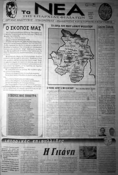Η εφημερίδα «τα ΝΕΑ της επαρχίας Φιλιατών»