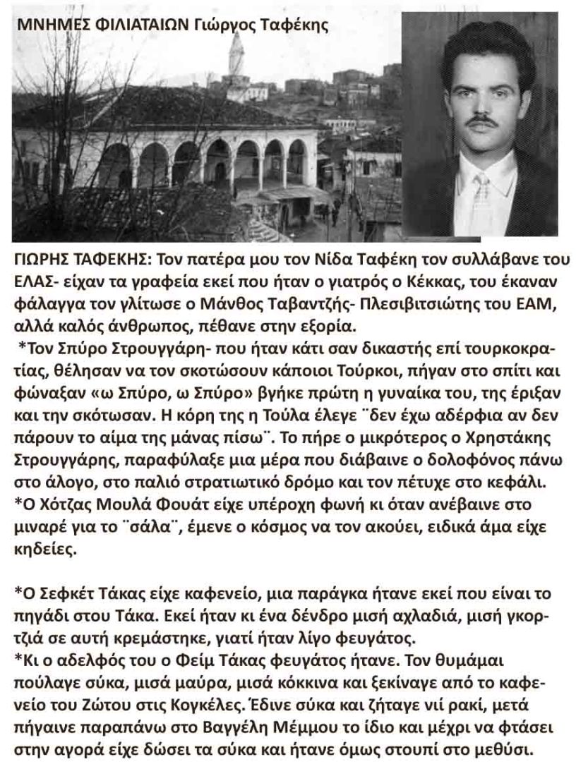 Μια συνήθεια μου, να μιλώ με παλιούς φιλιαταίους για τον πόλεμο, την κατοχή και ότι άλλο και να τα σημειώνω, μου βγήκε χρήσιμη, με έμαθε πολλά και κάποιες από αυτές τις μνήμες τις παραθέτω παρακάτω: