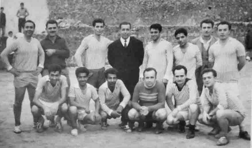 Όρθιοι, από αριστερά: Θανάσης Καλαμπάκας, Παναγιώτης Καλέσης, Παναγιώτης Μητροχρόνης, Τάσιος Σιάτας, ΣΣπύρος Νάτσιος, Αλέκος Νέτης, Κώστας Καλέσης, Φιλήμωνας;