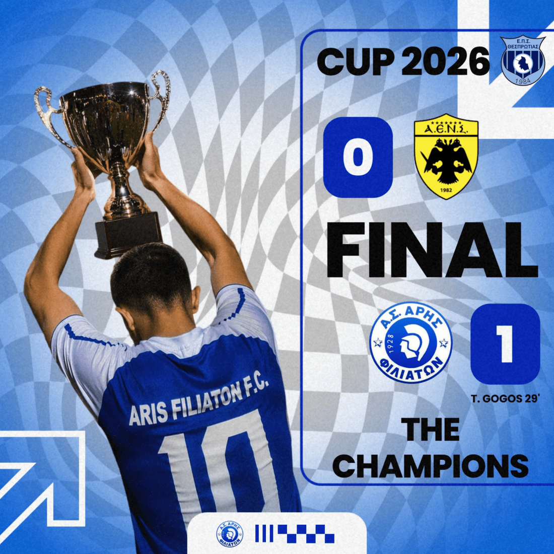 ΑΝΑΡΤΗΣΕ: Κυπελλούχος ΕΠΣ Θεσπρωτίας 2025-26 η ομάδα μας! Συγχαρητήρια σε όλους! @ακόλουθοι #arisfiliaton #champions